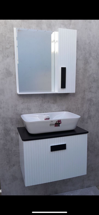 🔹 روشویی کابینتی ضدآب با سنگ چینی + باکس آینهدار – نصب آماده