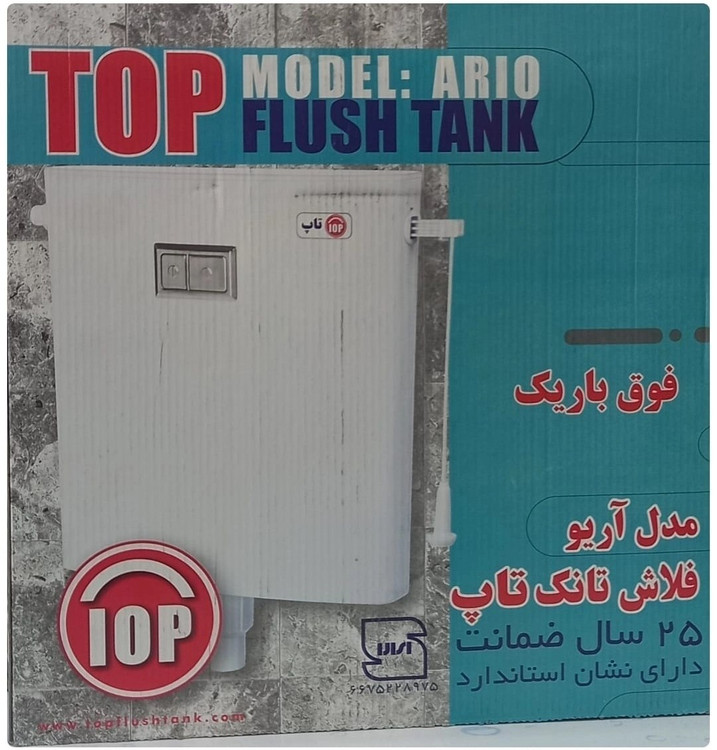 همچنین یک عدد فلاشتانک مدل آریو برند تاپ با طراحی ساده و عملکرد دو زمانه، در این مجموعه قرار دارد که دارای ۲۵ سال ضمانت تعویض میباشد.