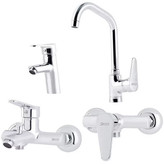 در کنار ۴ عدد شیر اصلی (روشویی، توالت، دوش، آشپزخانه)، این ست همراه با یک علم دوش یونیورست دوکاره استیل عرضه میشود. یونیورست دارای گوشی دستی و سردوش ثابت است، هرچند امکان استفاده همزمان از هر دو حالت وجود ندارد. جنس بدنه این یونیورست از استیل باکیفیت و مغزیهای برنجی است که در کنار طراحی ساده، دوام بالایی نیز دارد.