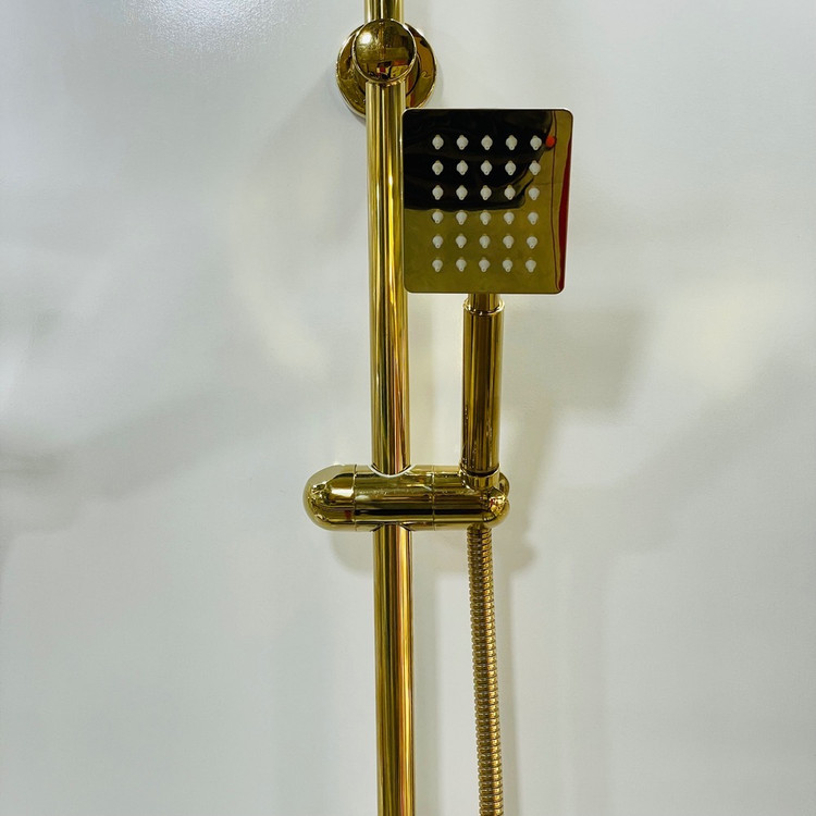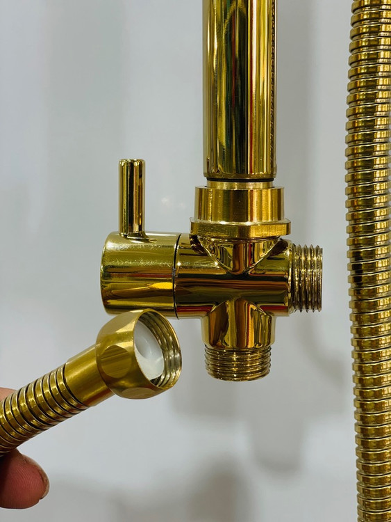 یونیورست دوکاره همراه این پک با ترکیب طلایی جذاب، سردوش سیلیکونی تکحالته داره که فقط با تکون دادنش رسوبگیری میشه. جنس بدنه از استیل 304 با روکش آبکاری طلایی براقه و شلنگ اون هم 145 سانتیمتره، مقاوم و خوشدست.