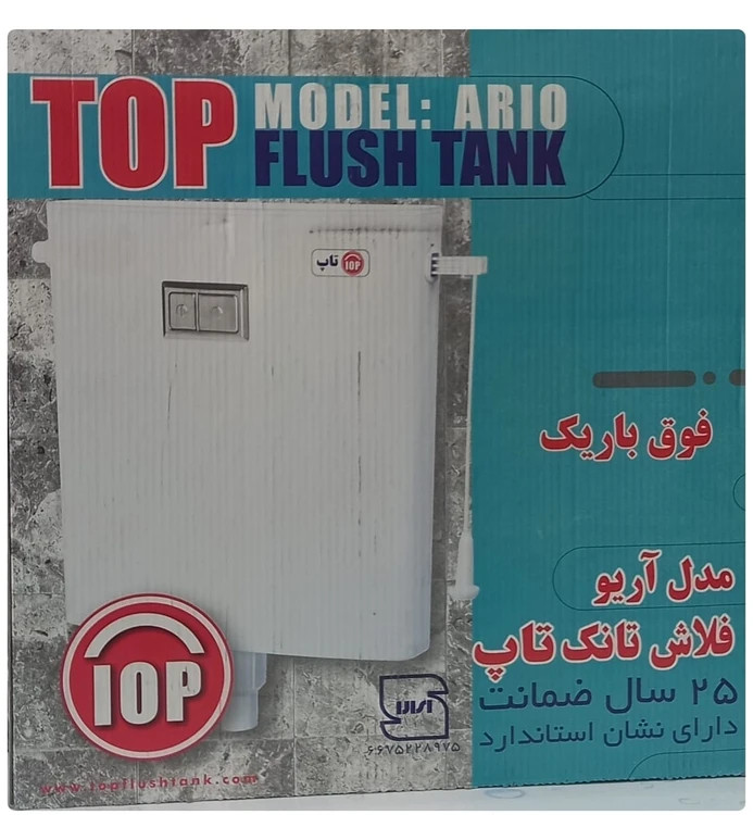 حجم اب فلاش تانک توسط فلوتر بین ۴ تا ۷ لیتر قابل تنظیم است فلاش تانک تاپ دارای زانو ۴۵ درجه میباشد که با استفاده از ان میتوان فلاشتانک را در هر کجا که بخاهیم نصب کنیم سیستم تخلیه بدون صدا این کار موجب کارایی بیشتر ان شده همچین قابل نصب بر روی تمام لوله هاست